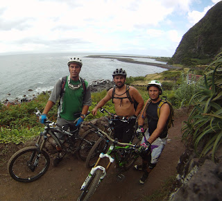 Logo para acordar, rolamos na "funduras" um trilho super técnico com muita pedra, de seguida foi a vez do "mero" o trilho mais famoso da zona, aquele com os S's junto à falésia. Para fechar a manhã fizemos o trilho irmão do "mero", a "ladeira das faias", mais "soft" e veloz no cimo mas apertando em baixo com mais S's encadeados.
